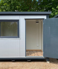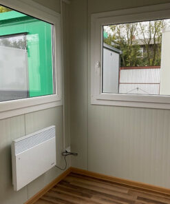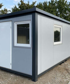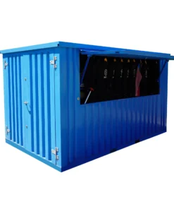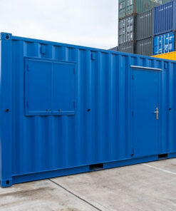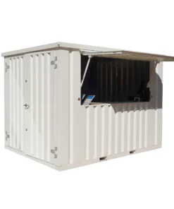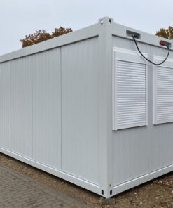 Contenedor de 15 pies con instalación eléctrica, rejillas de ventilación y cerradura con llave.
